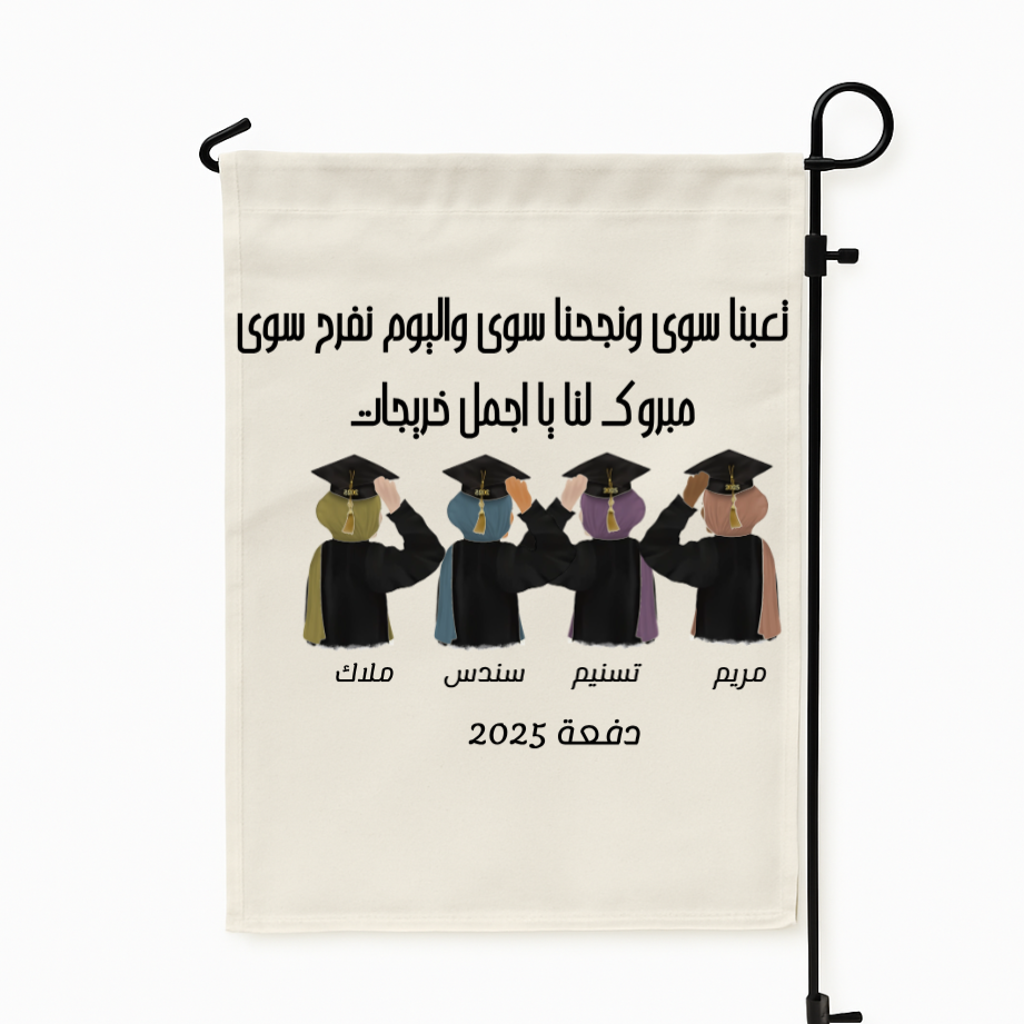 Honor your graduation journey and celebrate the unbreakable bond of friends with this personalized Arabic garden flag.